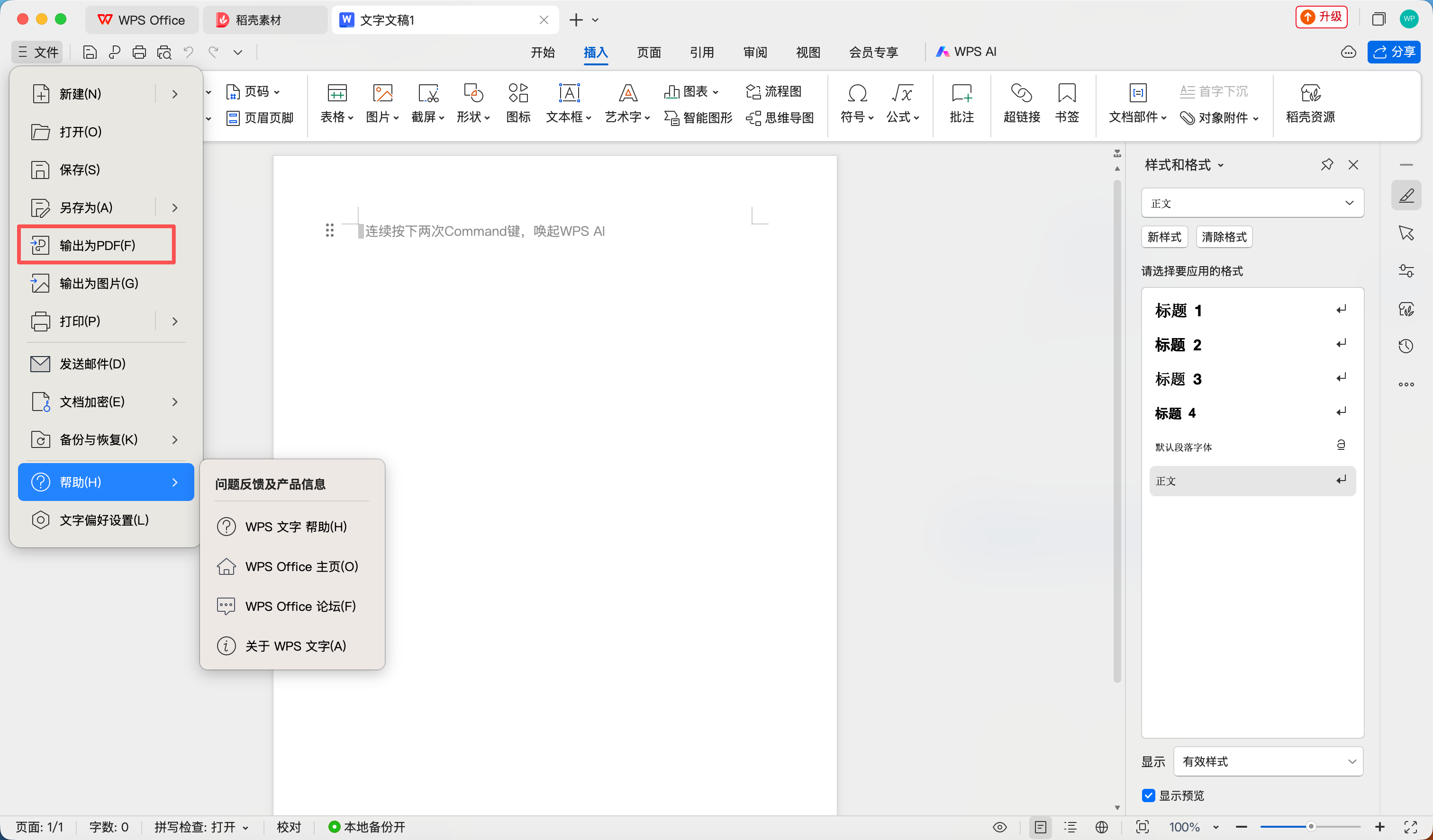 适合场景: 手头只有 WPS,图片数量不多,对排版要求不高。